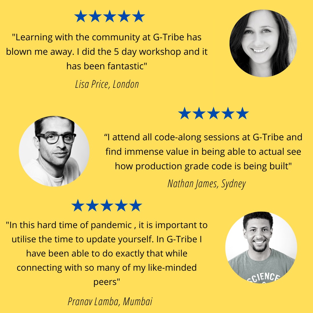 Whatever you are learning in tech, at G-Tribe you'll find a thriving community who will provide the support, connections, and tools you need to complete your learning journey and effectively transition.